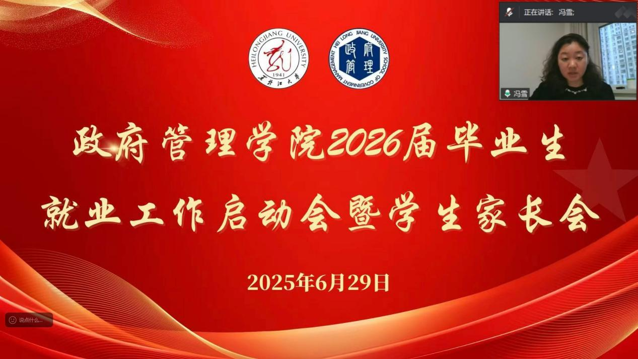 为搭建家校协同育人桥梁,落实2026届毕业生就业工作,政府管理学院于6月29日19时通过腾讯会议召开2026届毕业生就业工作启动会暨学生家长会。政府管理学院党委书记王佳出席会议,2026届毕业生辅导员刘千瑞、戚丽丽、2026届全体毕业生及家长参加会议,会议由学院党委副书记冯雪主持。冯雪对当前就业形势进行了介绍。她指出,近年来,受多重因素的影响,毕业生在求职过程中面临着新的挑战,升学与公考赛道的竞争愈发激烈。同学们应...