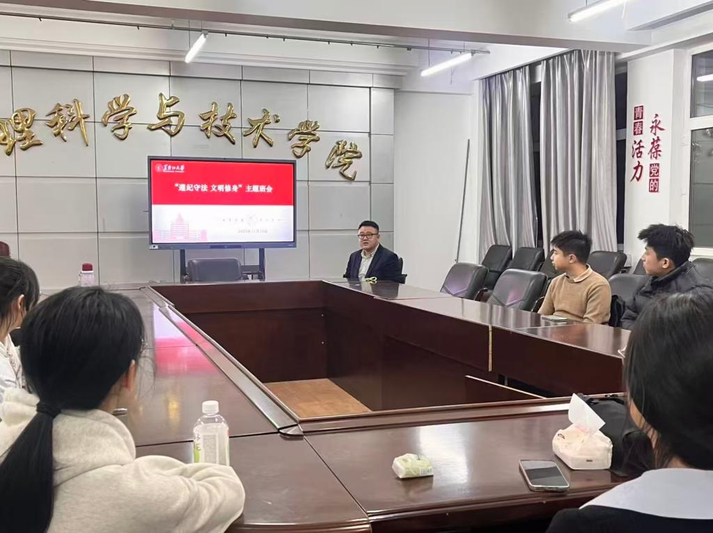 为进一步加强学生教育管理,引导学生自觉遵守法律法规和校纪校规,树立正确法治观念、涵养文明品格,物理科学与技术学院各年级于11月10日至20日开展“遵纪守法 文明修身”主题班会。班会由各年级辅导员及班长主持。