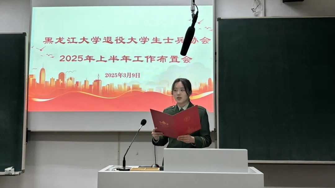 为系统总结2024年协会工作,明确本年度工作重点,3月9日18时,黑龙江大学退役大学生士兵协会开展2025年上半年工作布置会,协会指导教师闵诗尧和全体协会成员参加,会议由协会宣传部副部长魏欣然主持。