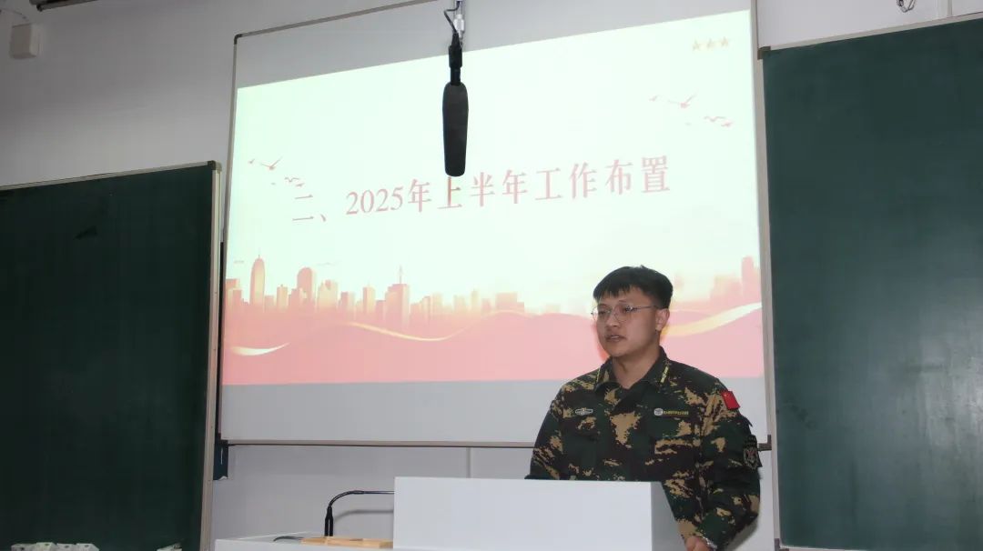 首先,协会主席刘志豪向大家介绍工作要点,对2025年上半年协会主要工作进行布置,他表示,全体协会成员应当遵守纪律,加强训练,保持强健体魄,积极参加校园活动的服务与保障工作,同时积极投身于学校征兵宣传工作。