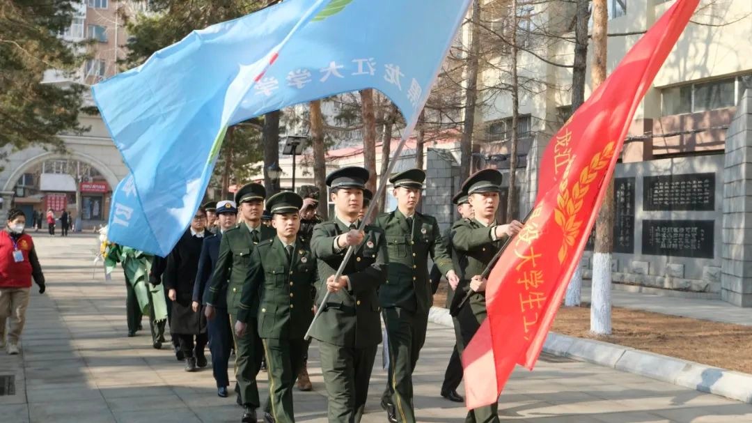 为缅怀革命先烈,深化国防教育,弘扬爱国主义力量,4 月 3 日上午,黑龙江大学退役大学生士兵协会和学生军事兴趣社团赴哈尔滨烈士陵园,开展 "缅怀先烈铸英魂,砥砺青春永奋进" 清明祭扫主题活动。活动由退役大学生士兵协会副主席原文龙主持,协会和社团成员参加。