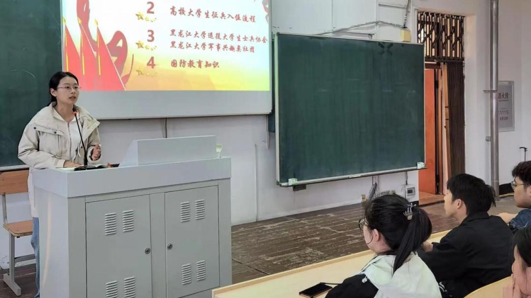 俄语学院创新采用“年级大会+主题班会”模式。辅导员通过年级大会系统解读《兵役法》及优待政策,锚定学费补偿、升学就业等学生关心要点;同时邀请退役士兵深入班级,结合自身军旅经历分享成长故事,以真实案例展现军营对意志品质的锤炼和职业发展的助力,通过“理论+情感”双重动员,激发学生参军报国的主动性与向往感。