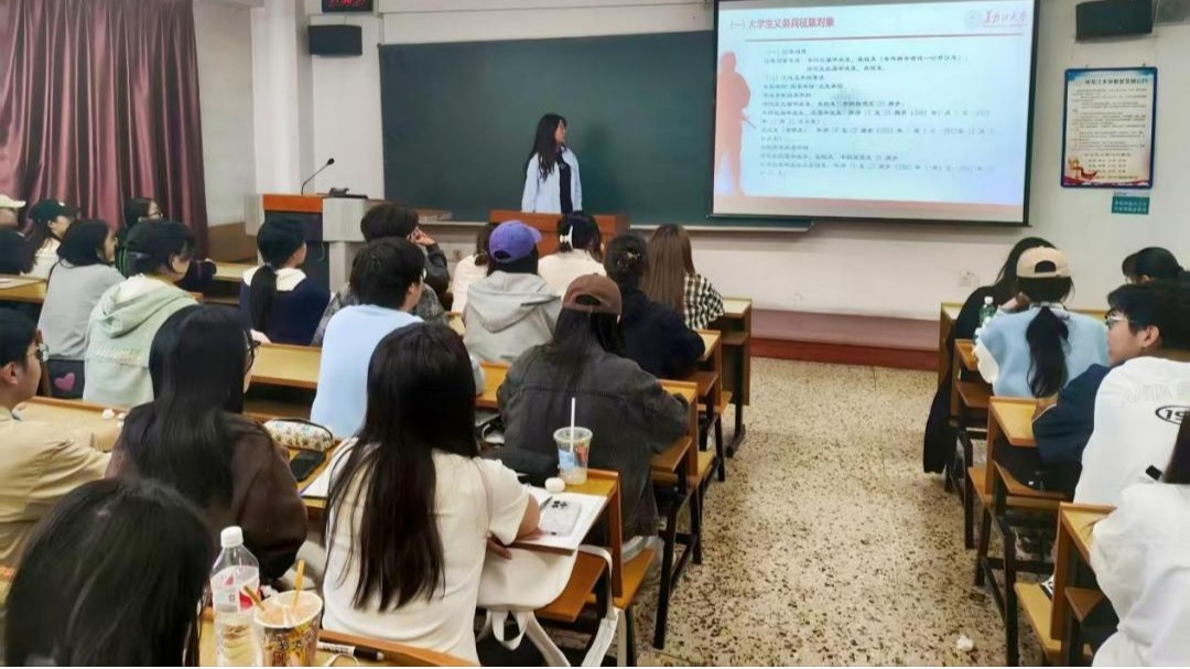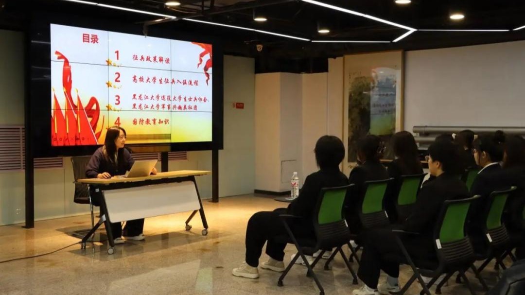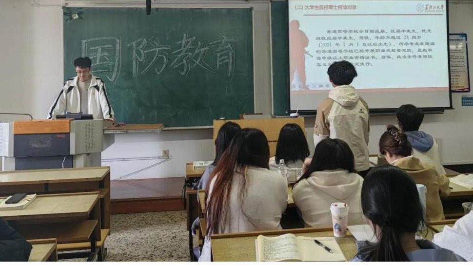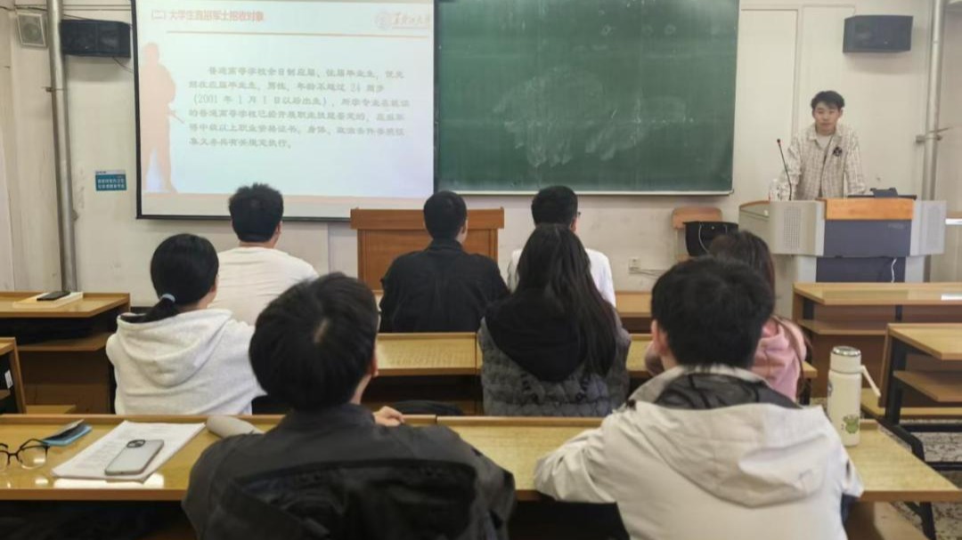 创新创业教育学院(创新创业教育中心)聚焦于“精准政策解读”领域。各班班长围绕入伍条件、报名流程、优待政策展开全链条讲解,从年龄、身高、视力等硬性指标到“兵役登记—体检政审”等流程,再到经济补助、学业就业保障等核心关切,以“干货式”解读帮助2024级学生明晰参军路径,强化依法登记意识,消除报名疑虑,有效提升学生对参军入伍的认同感。