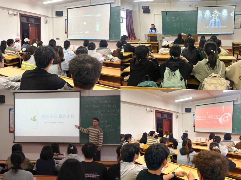 为贯彻落实有关部门关于反诈工作的部署要求,切实增强我校学生的反诈防骗意识,切实提升我院学生的防范意识和反诈能力,筑牢校园安全防线,根据学校《关于开展“防范于心,反诈于行”主题班会的通知》要求,新闻传播学院各年级于9月17日至24日组织开展了“防范于心 反诈于行”专题宣传教育班会,着力筑牢坚实校园安全防线。
