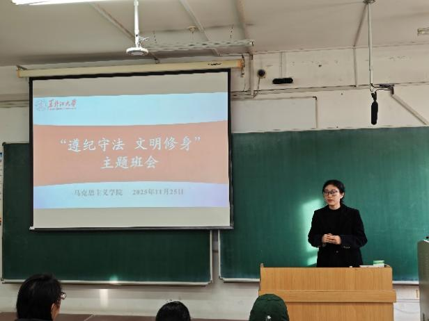 本次班会以制度育人、安全育人、健康育人为核心,通过多维度的内容设计,推动“遵纪守法、文明修身”理念深入学生心中。会后,各年级将持续通过班级研讨、专题推送等形式巩固教育成果,助力学生从“知规”走向“守规”、从“懂安全”走向“会防护”,为学生成长和发展筑牢坚实基础。(马克思主义学院供稿)