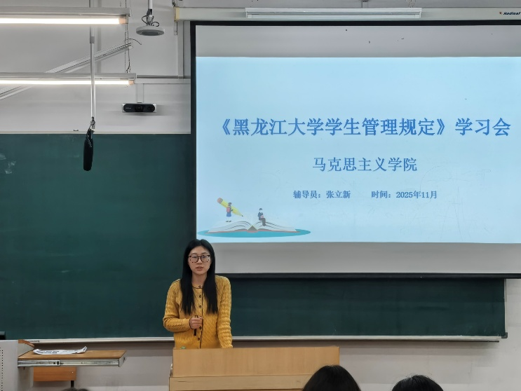会议首先围绕2025年新版《黑龙江大学学生管理规定》展开详细解读。各年级辅导员聚焦纪律处分、日常行为规范等核心条款,结合诚信考试、宿舍安全、网络安全教育等内容,通过典型案例进行警示教育,引导学生从被动遵守转向主动认同,将校规校纪内化为日常行为的自觉遵循。