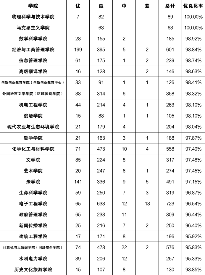 本次共检查6440间寝室(其中本科生寝室4531间,研究生寝室1909间),经检查优秀1098间,良好5168间,中等135间,差评39间,优良比率97.3% 。现将学院检查结果公布如下: