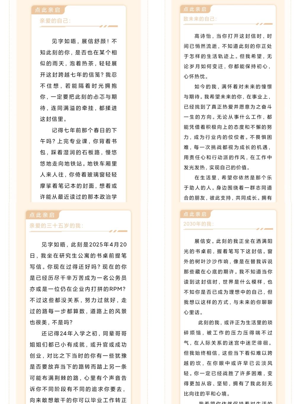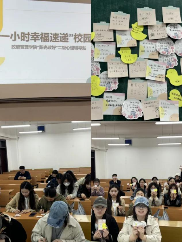 为缓解学生们学业和未来规划的双重压力,引导学生探索内心世界,进行自我成长与反思,政府管理学院二级心理辅导站开展了“你要的信福——写给未来的自己”心灵对话活动。此次活动通过给自己写信的形式,促使同学们深刻认识到,未来的美好图景源于当下的自我觉察与切实行动。我们都应该怀揣这份“信福”,在人生道路上坚定步伐、稳步前行,走向从容自信、向阳生长的未来。