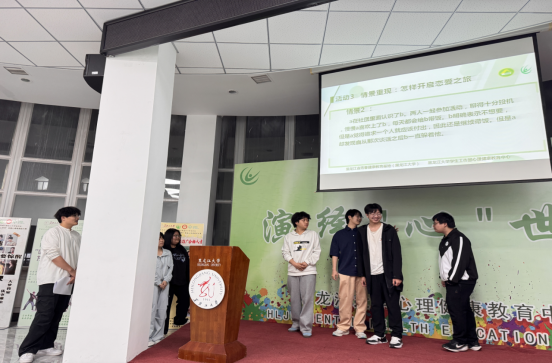 接着,环节二是情景重现:怎样开启恋爱之旅。本环节设置四个恋爱情景,每个情节均有恋爱开始阶段会出现的问题,同学们将分组演绎情景中主人公,朋友、家人或老师,重新设计情节,尝试改变故事的走向。通过角色扮演,大家可以更直观地感受不同沟通方式和相处模式对恋爱关系的影响。演员们全情投入,将恋爱中的矛盾与抉择生动呈现。台下观众也被剧情深深吸引,不时为精彩的演绎鼓掌,或因真实的情节陷入沉思。最后主持人通过案例分析、小组讨论等多元形式,助力同学们培育正确恋爱观念。同学们纷纷积极参与讨论,分享自己对于恋爱的看法和经历。