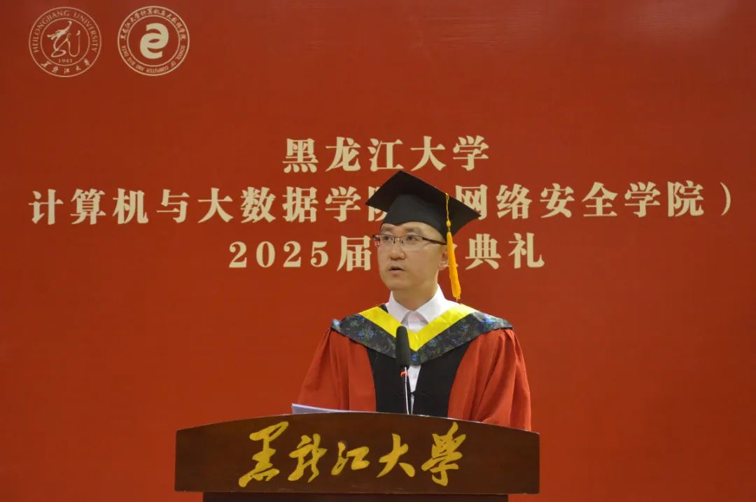5月28日下午,黑龙江大学计算机与大数据学院(网络安全学院)在体育馆举行2025届毕业典礼。学院领导班子、系主任、校友代表、教师代表以及全体毕业生及家长代表参加毕业典礼,学院党委副书记张立才主持。